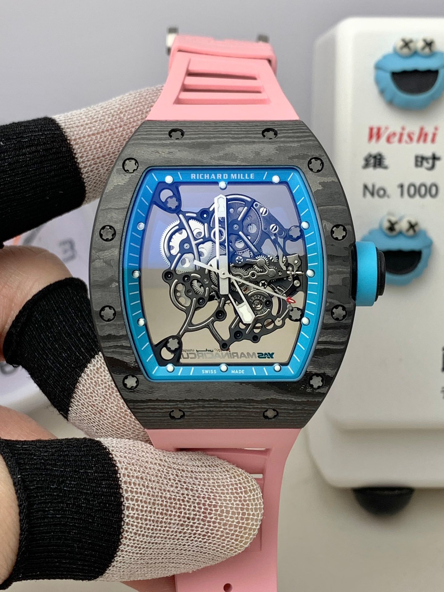 APS Factory’s new RM055 is the highest version on the market. Richard takes it as its theme of lightness and fashion. All our metal parts are made of titanium and are simultaneously original (the invisible metal parts you see are all titanium). As a billionaire’s entry point, For tickets, we use Dandong’s customized integrated movement RMUL2, the highest version of movement, case, strap and all accessories currently on the market.