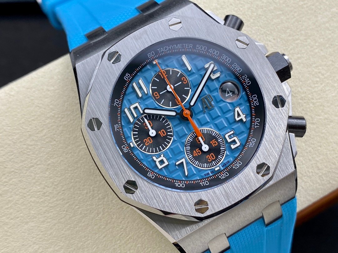 APF factory Audemars Piguet Royal Oak Offshore series 42mm, the top work, exclusive original technology to loosen the headband, breaking the barrier that the steel band on the market cannot loosen the headband, realizing the original process, so that the steel band can fit the wrist better. Equipped with 3126 chronograph movement.