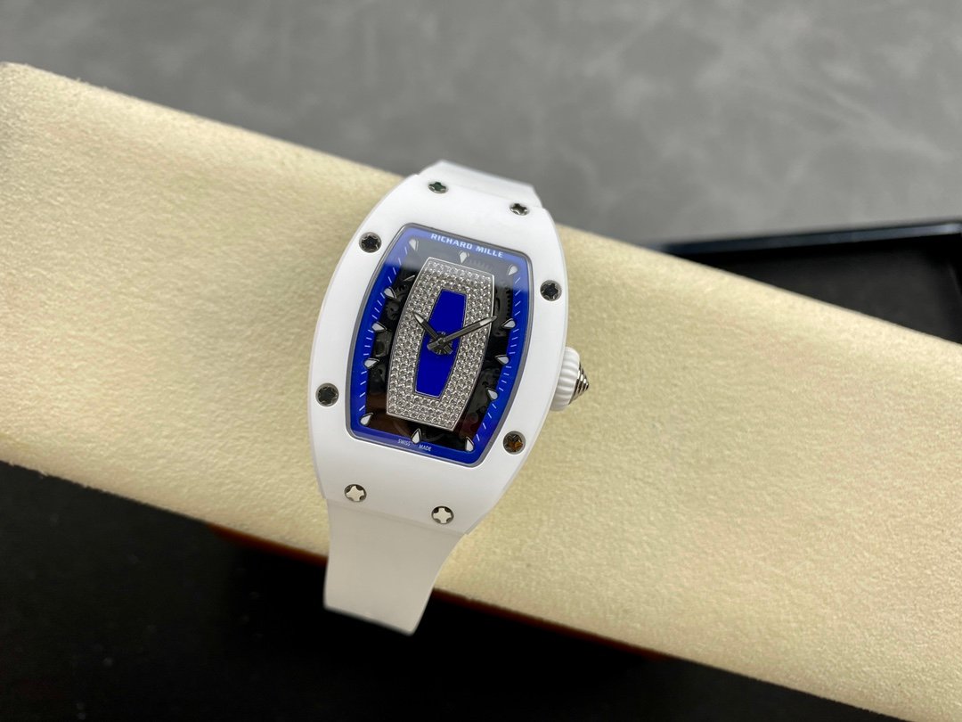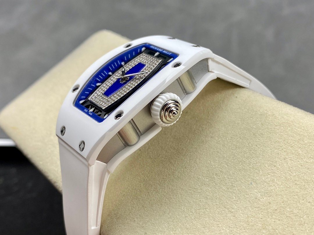 BBA Factory Richard Mille RM07 31.4mm Titanium&Carbon Fiber White Rubber Strap Skeletonized Blue Dial