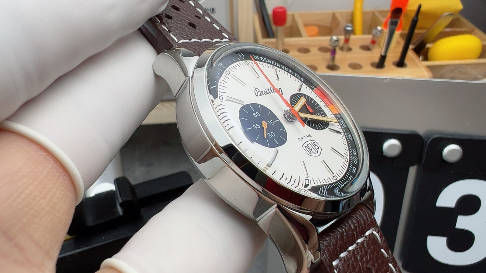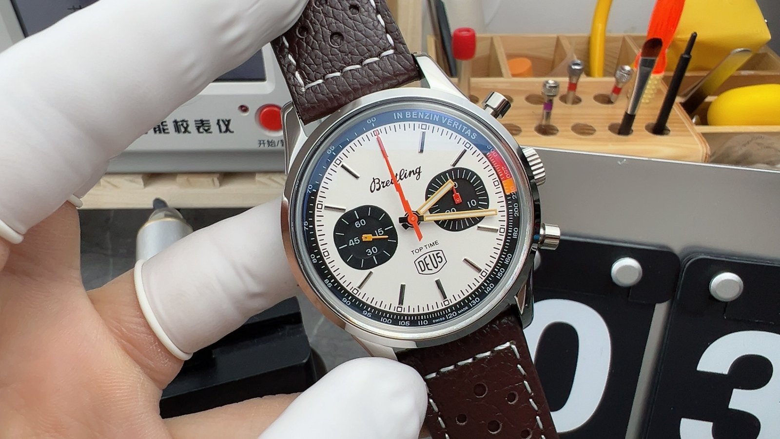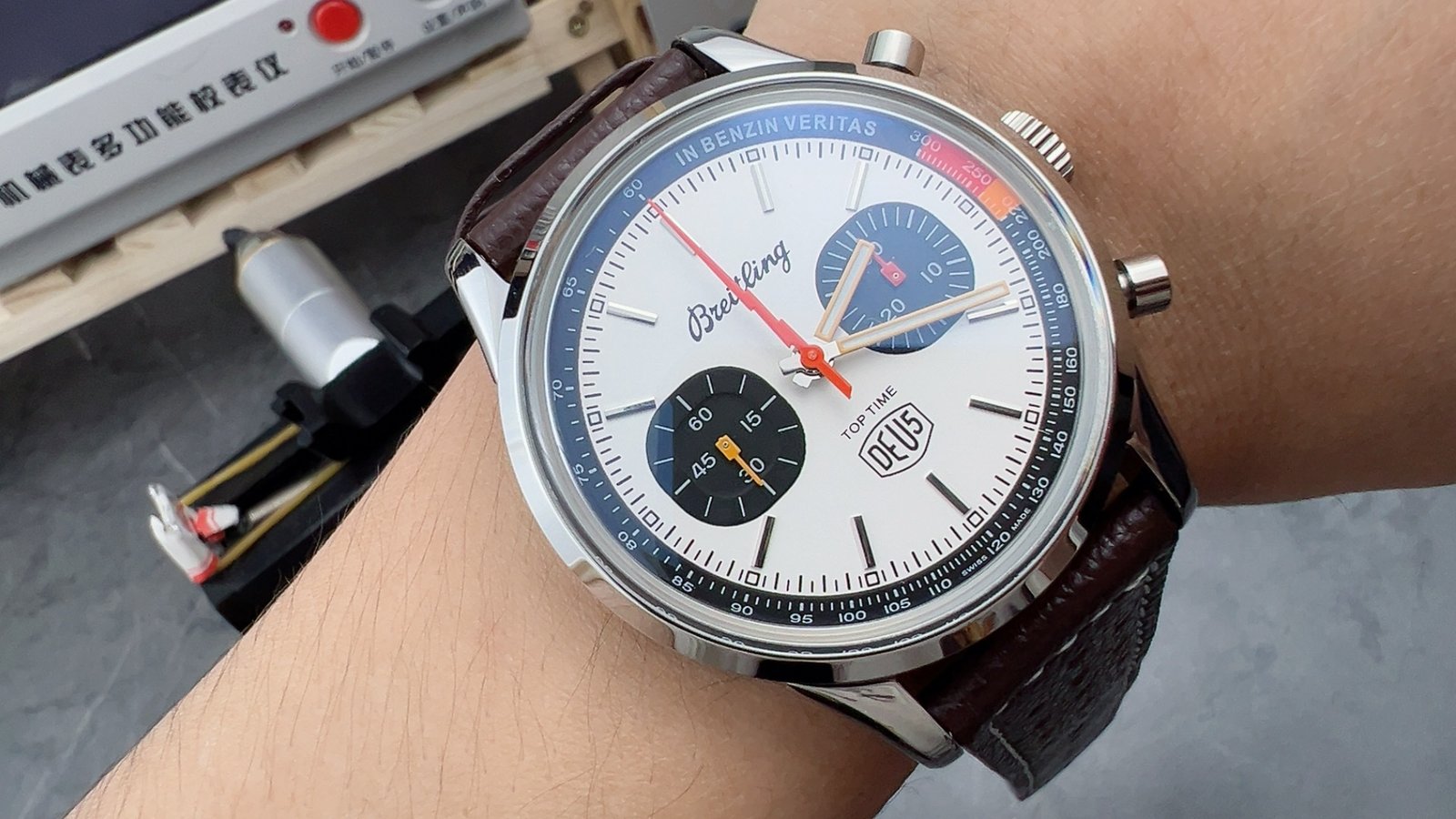 Be the first to review “BLS Breitling Top Time AB01764A1C1X1 41mm steel strap black eye white dial”