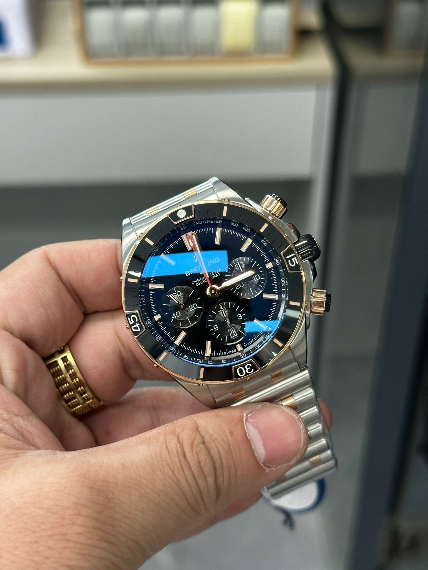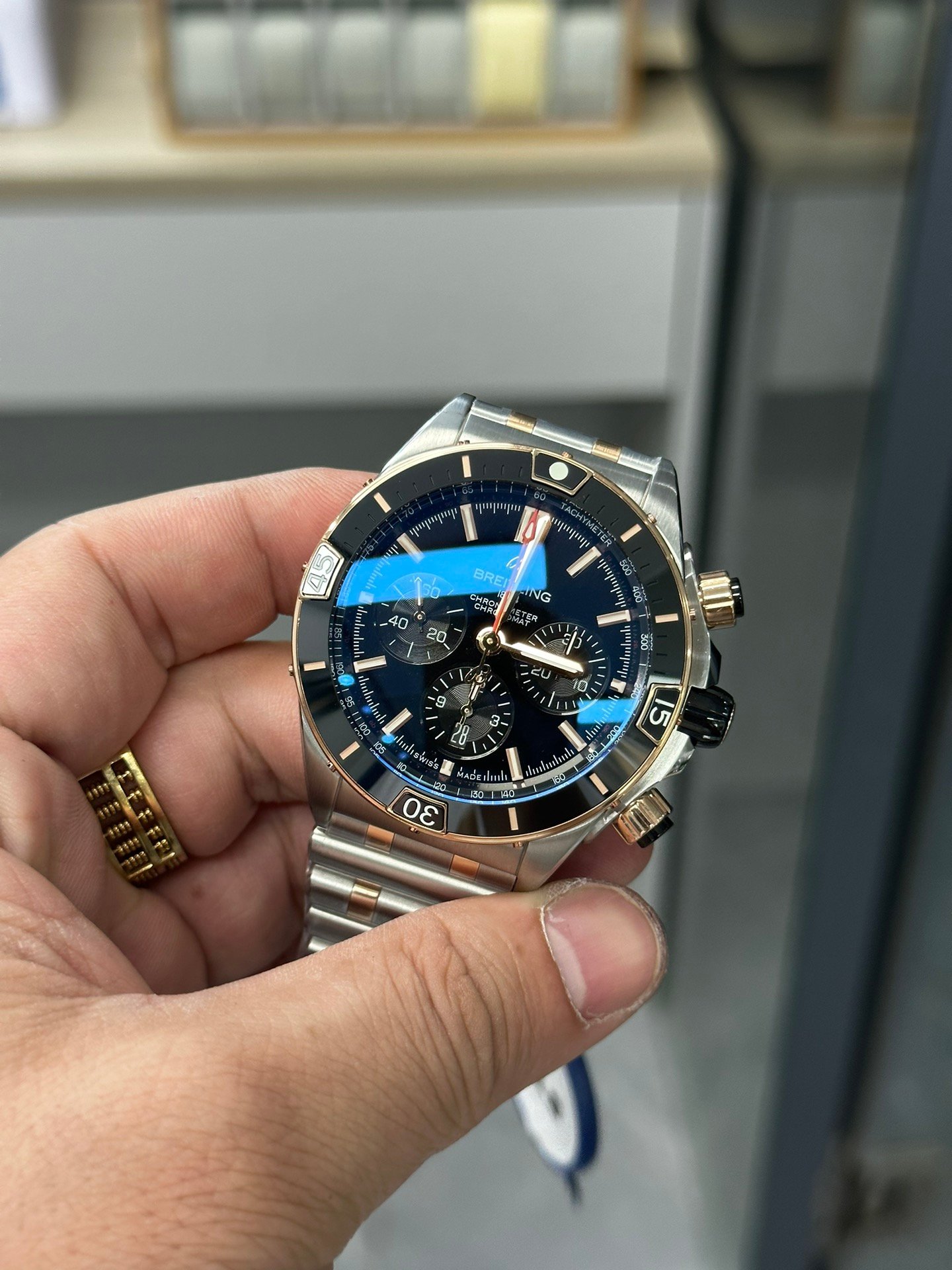 The first BLS Breitling super mechanical chronograph 44mm bullet chain on the market, with exclusive ceramic technology, breaks through the original technical barriers. The design is inspired by the Italian Air Force’s “tricolor arrows” and is a chronograph loved by explorers. The work of ingenuity, as always, uses the original factory. 1-B01 self-winding chronograph movement, 2-stainless steel case with screw-in case back, 3-ratchet unidirectional bezel, screw-in, double sealing gasket watch Crown, 4-Using curved sapphire crystal glass and double-sided anti-glare mirror. worth having.