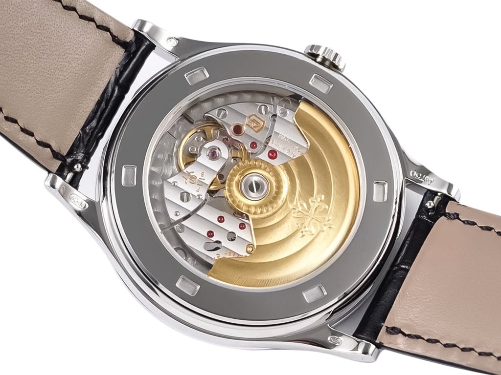 Stainless steel case with screw-down crown and simulant diamond-set bezel. Sapphire crystal open case back. Case diameter (10-4 o’clock): 38mm. Height: 8.4mm |