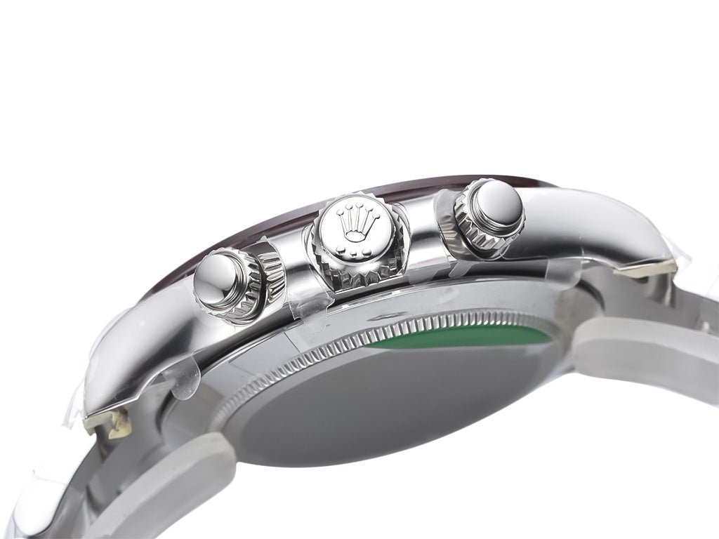 A true statement of refinement, this exceptional timepiece features an ice blue dial with brown-outlined chronograph subdials, housed in a robust stainless steel case. Paired with a polished Oyster bracelet and powered by the self-winding calibre 4130 movement, it delivers unparalleled precision. Available now with full box set for ultimate exclusivity.