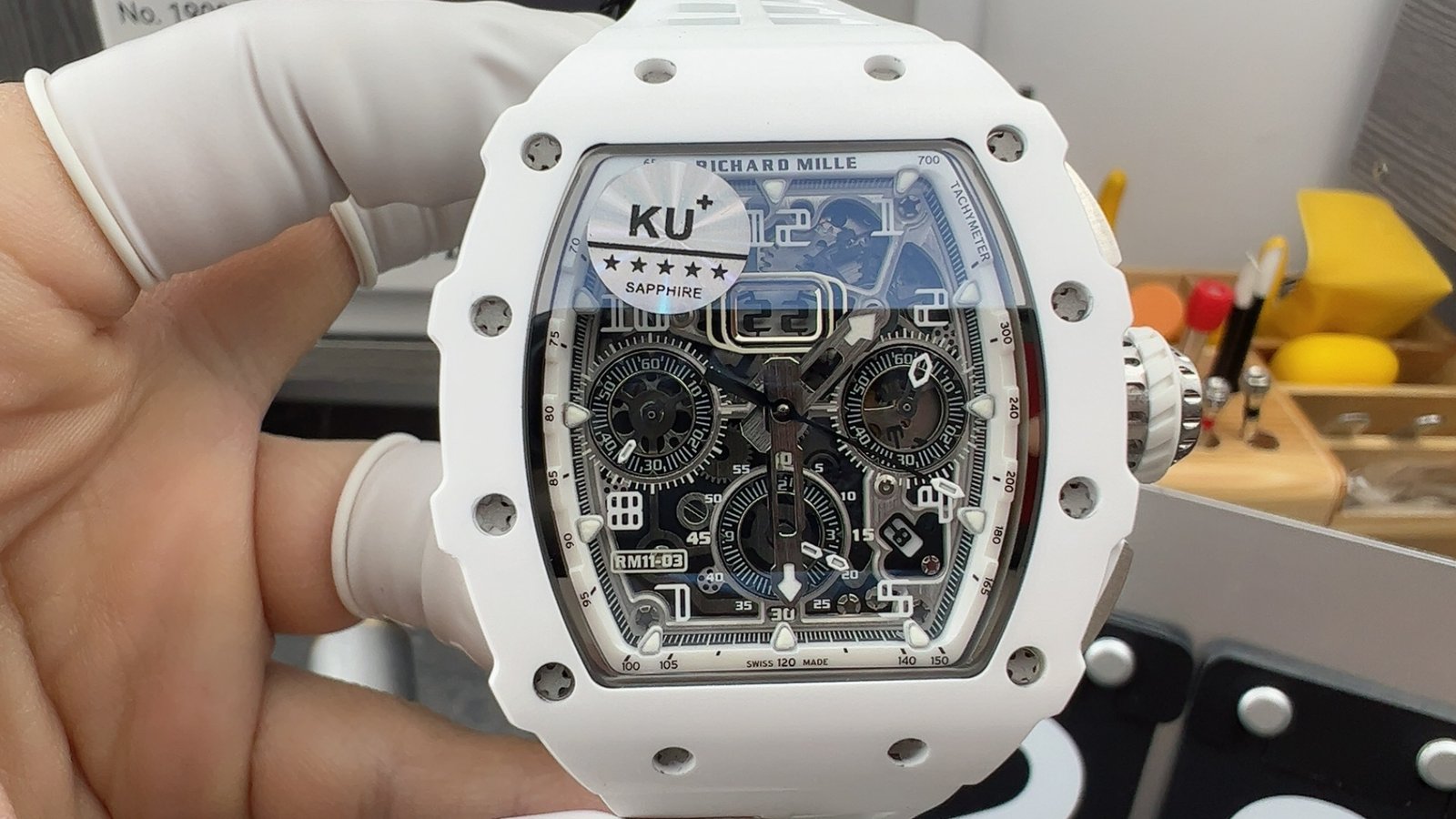 The pinnacle masterpiece of KV Taiwan factory, a strong attack [Proud] Richard Mille RM011-03LMC ceramic watch, RM11 classic racing series🏁, the surface and bottom layer of this watch are made of nano-zirconia white ceramic, all parts are in accordance with It is produced according to the new cutting-edge machine specifications, and is cut through five-axis CNC to produce the most perfect line beauty [color]. It is equipped with a fully automatic chronograph movement, an absolute work of ingenuity! 🔥🔥