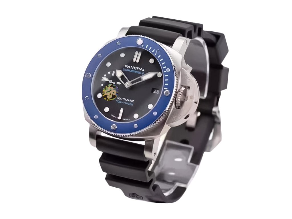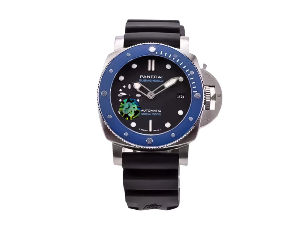 Luminor Submersible 42 3 Days Automatic ‘Azzurro’ Stainless Steel Case with Blue Ceramic Bezel insert, Black Dial and Black Strap (42mm)