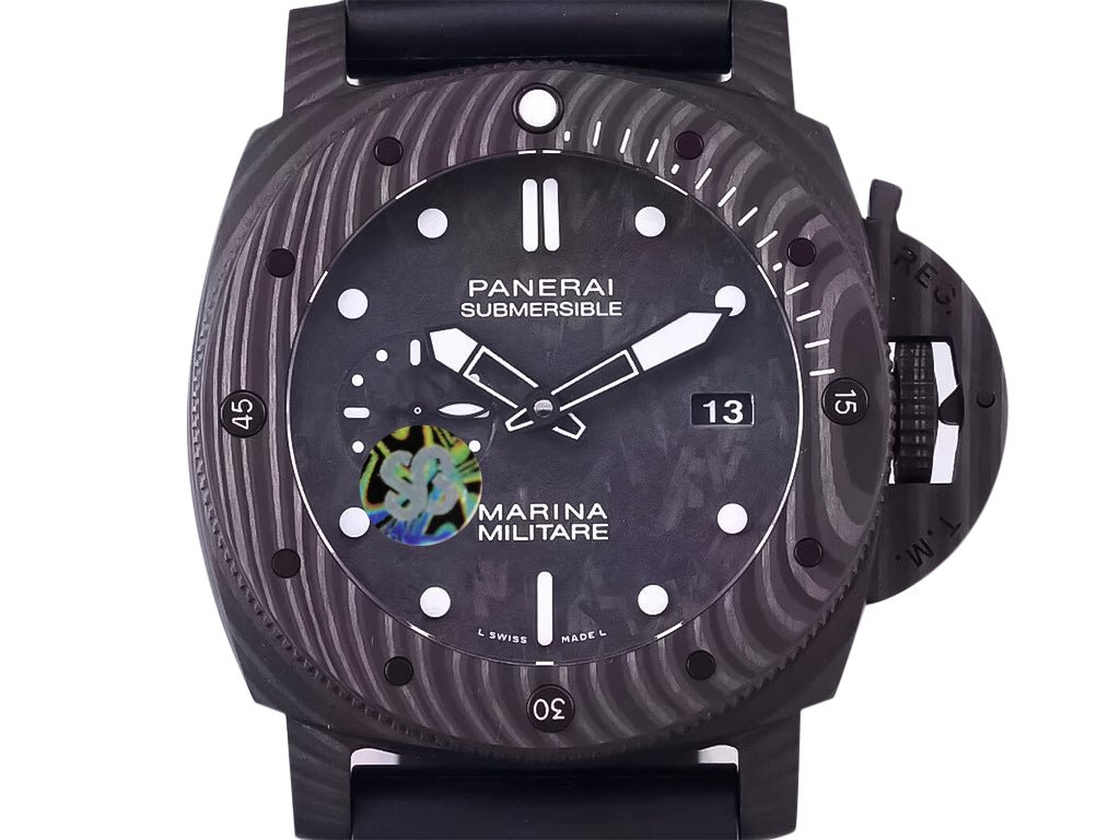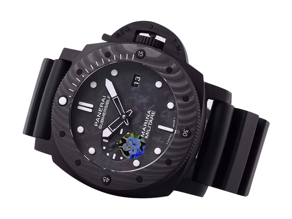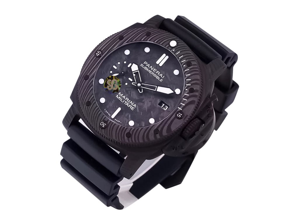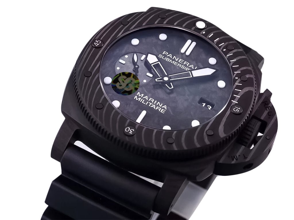 Luminor Submersible 47 Marina Militare ‘Carbotech’ Forged Carbon Case and Bezel, Carbon Dial and Black Strap (47mm)