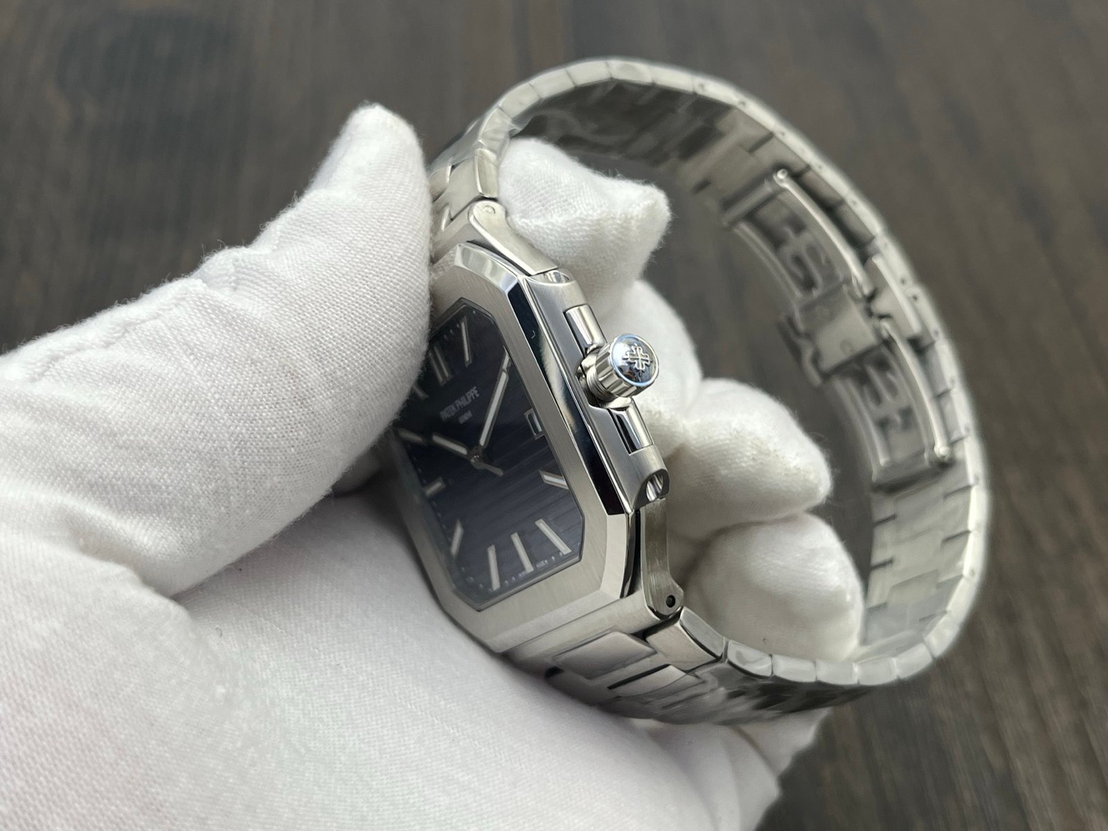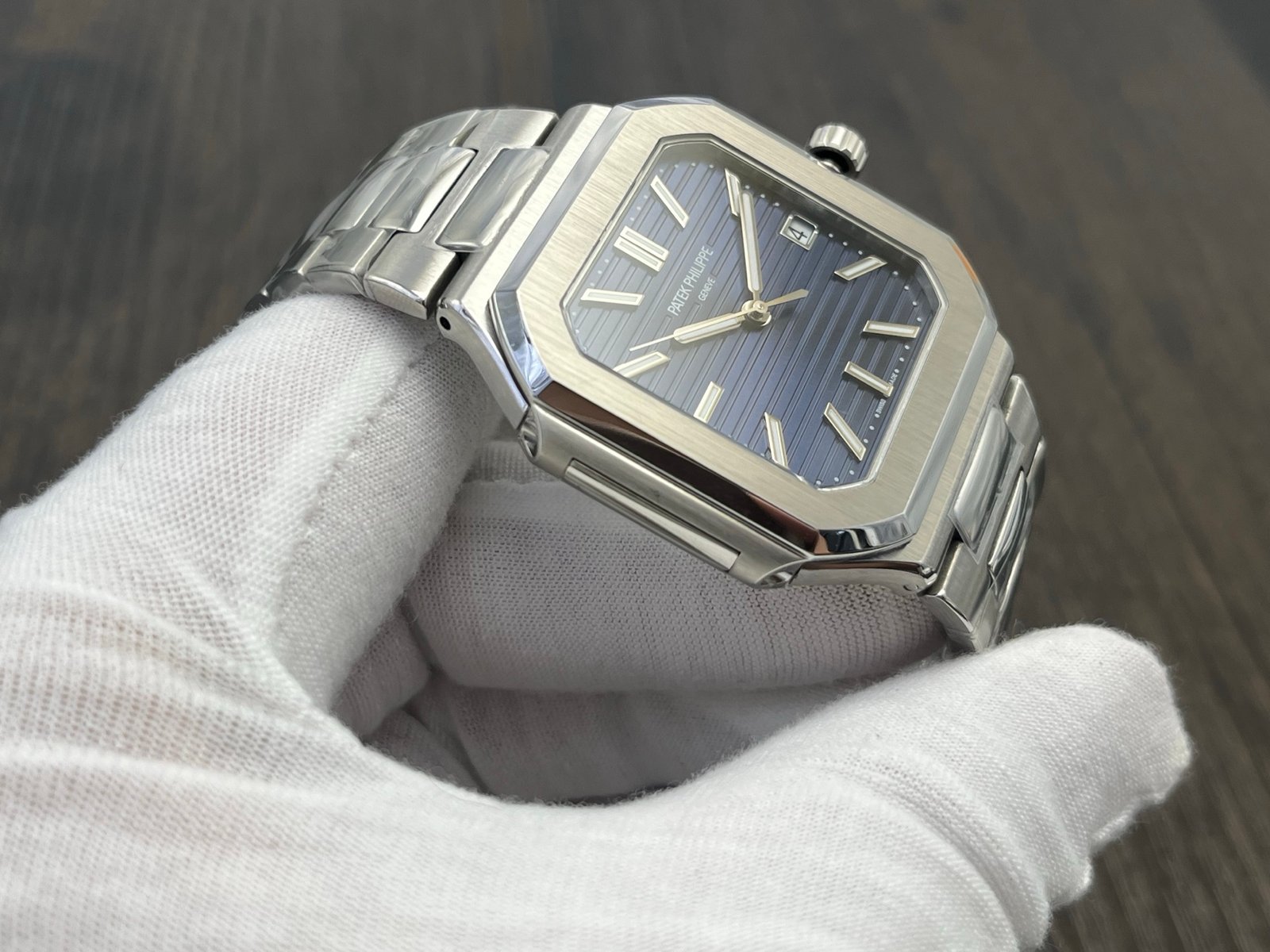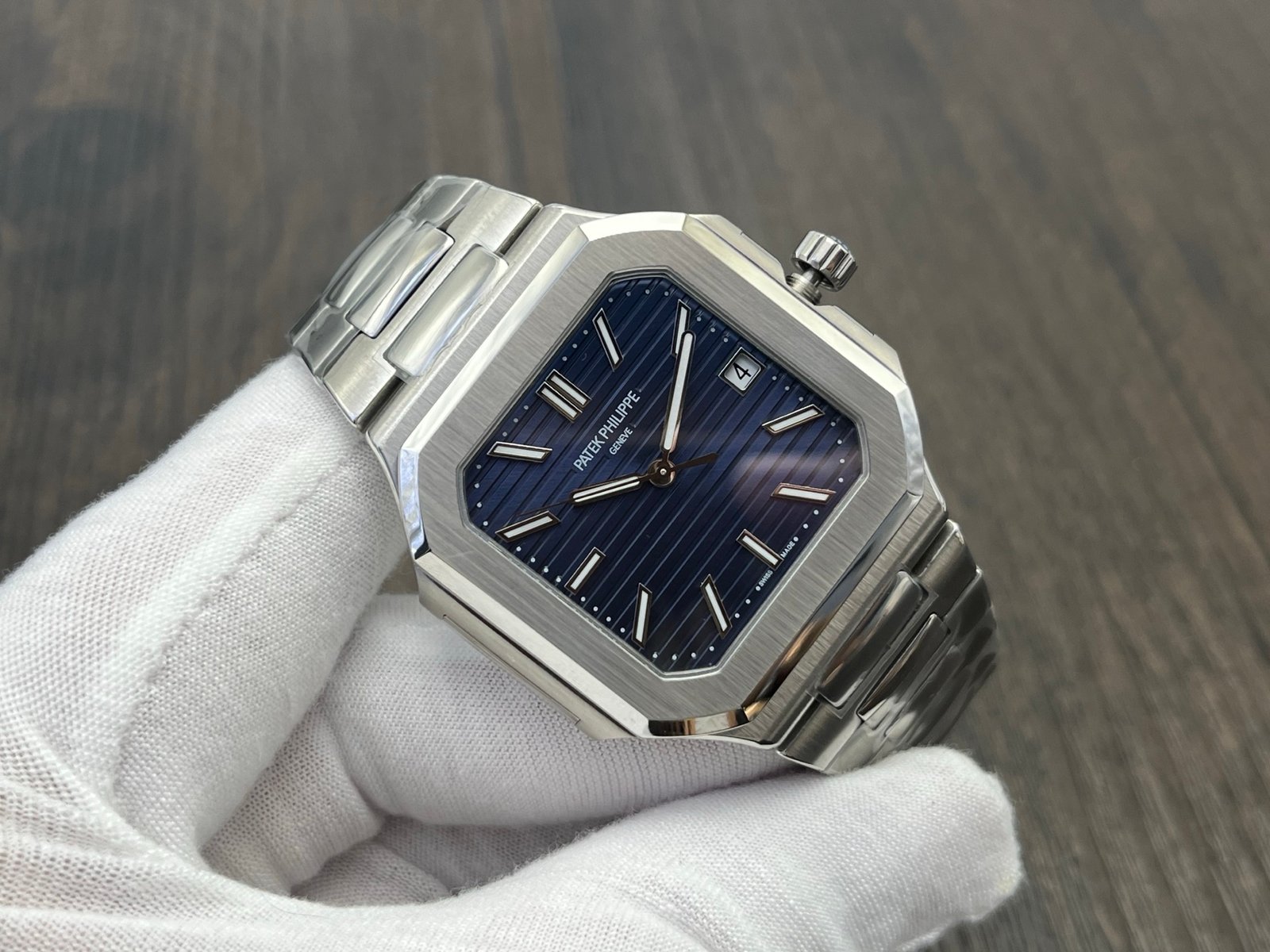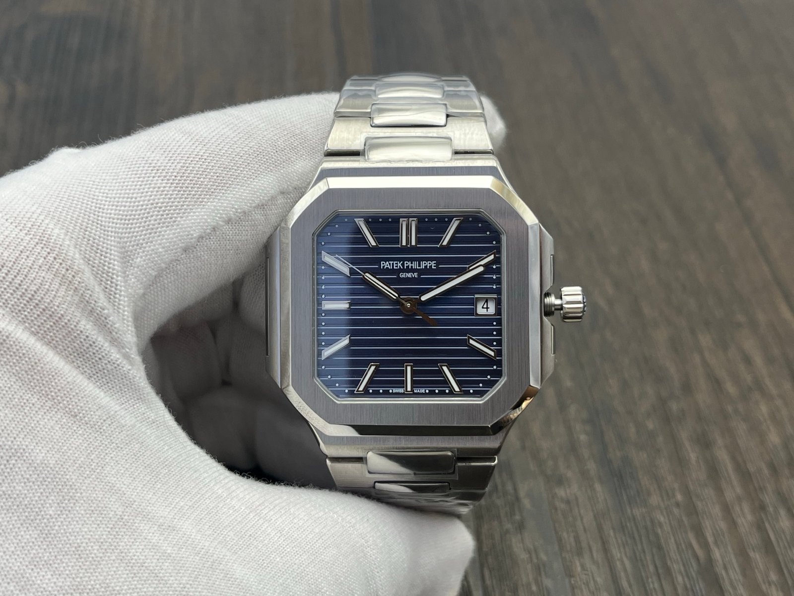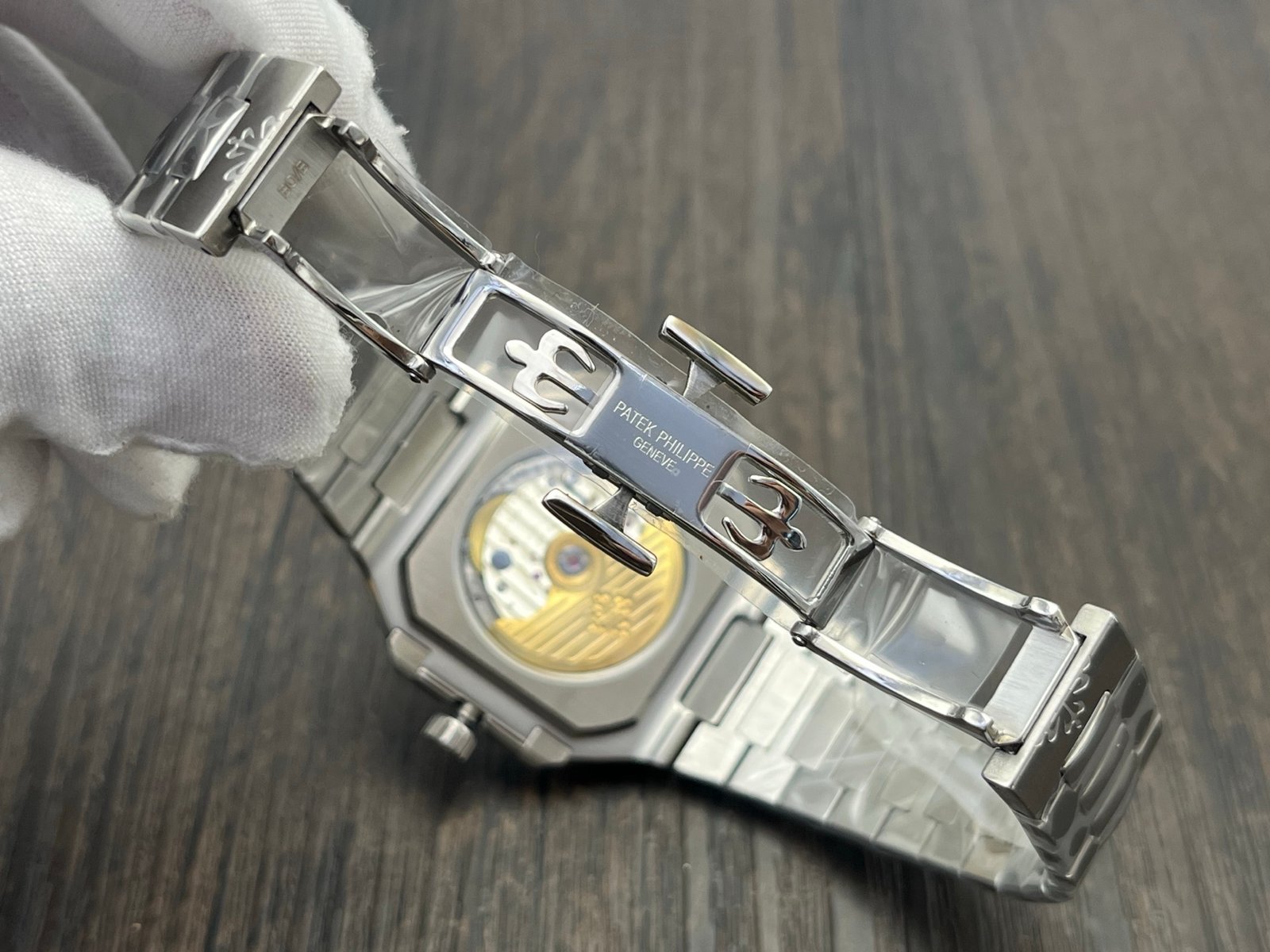 Featuring a distinctive square case with rounded corners, the design draws inspiration from the iconic Nautilus, utilizing a double-layer case structure that seamlessly integrates with the bracelet for a highly cohesive look.