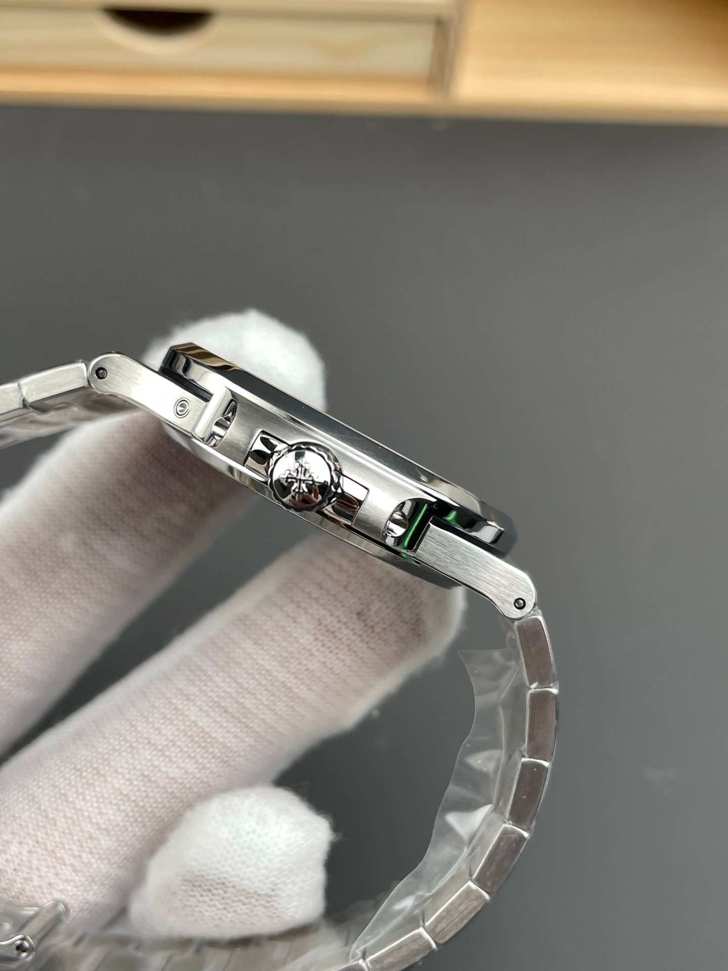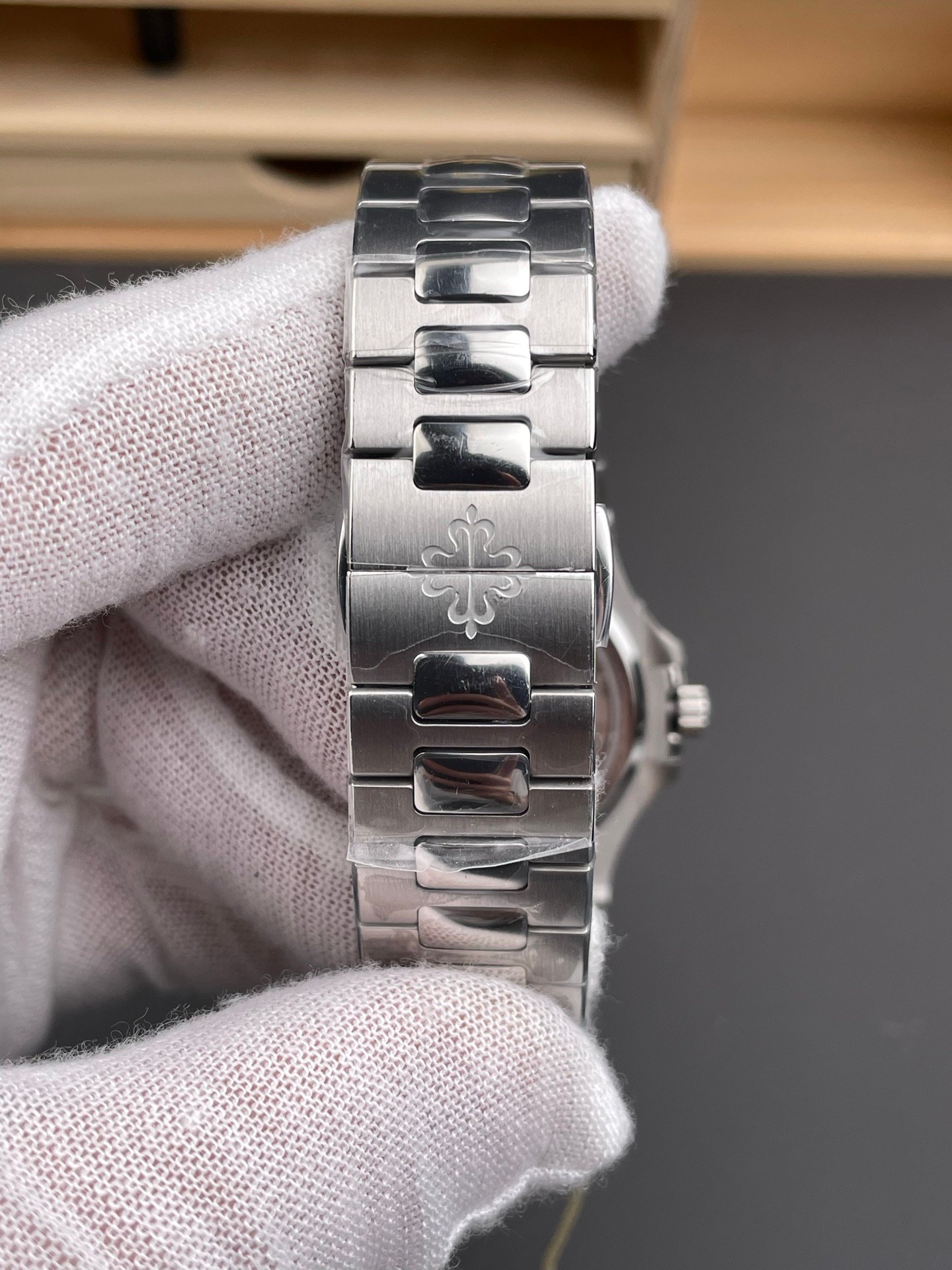 The newly revised stainless steel strap, the hinge part is developed based on the disassembly of the real Patek Philippe Nautilus stainless steel strap, and has the same fitting effect as the original, counterattacking all copies on the market, the hinge opening and closing angle is the same as the original, and the locking sound is the same as the original. same. The PPF factory’s exclusive “Blue Charm” noodles are infinitely close to the original version, and it is even more outstanding!