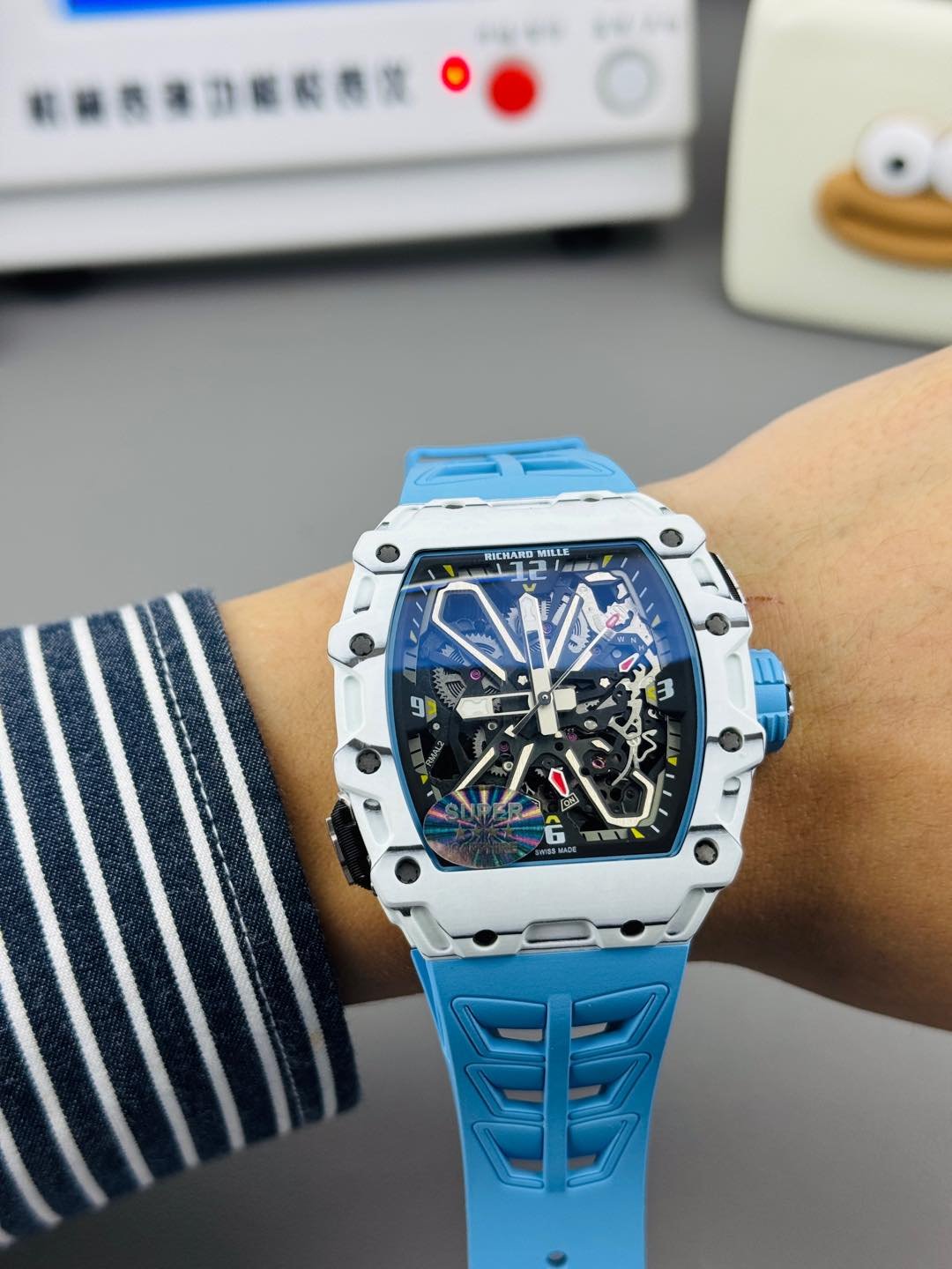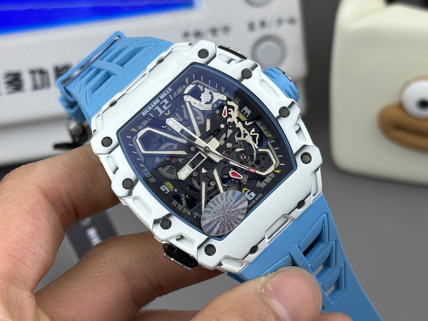 BBA Factory Richard Mille RM07 31.4mm crystal White Rubber Strap Skeletonized White Dial