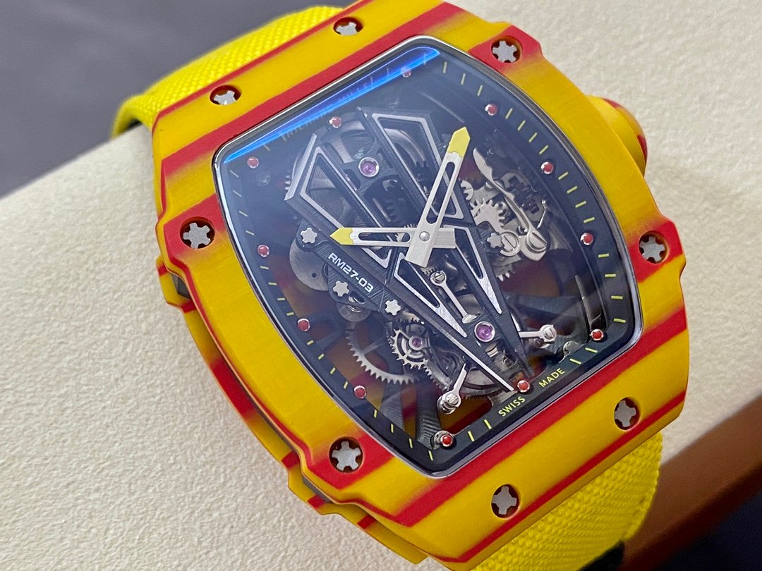 RM Factory Richard Mille RM27-03 Rafael Nadal Tourbillon 47.77mm Carbon Fiber Textile Strap Skeletonized Dial