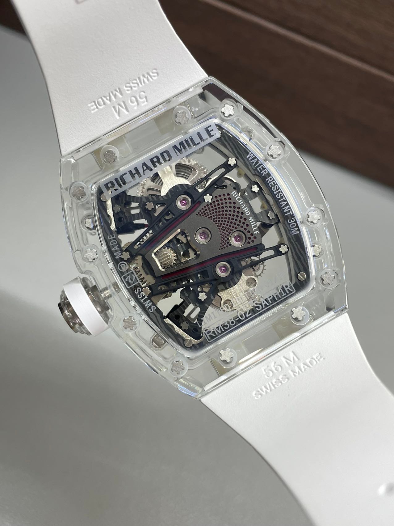 RM Factory Richard Mille RM38-02 43mm Crystal White Rubber Strap Skeletonized White Dial