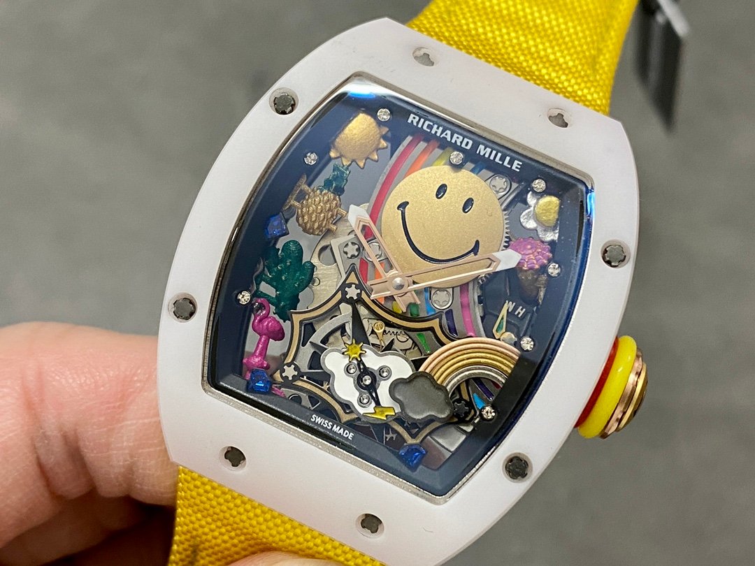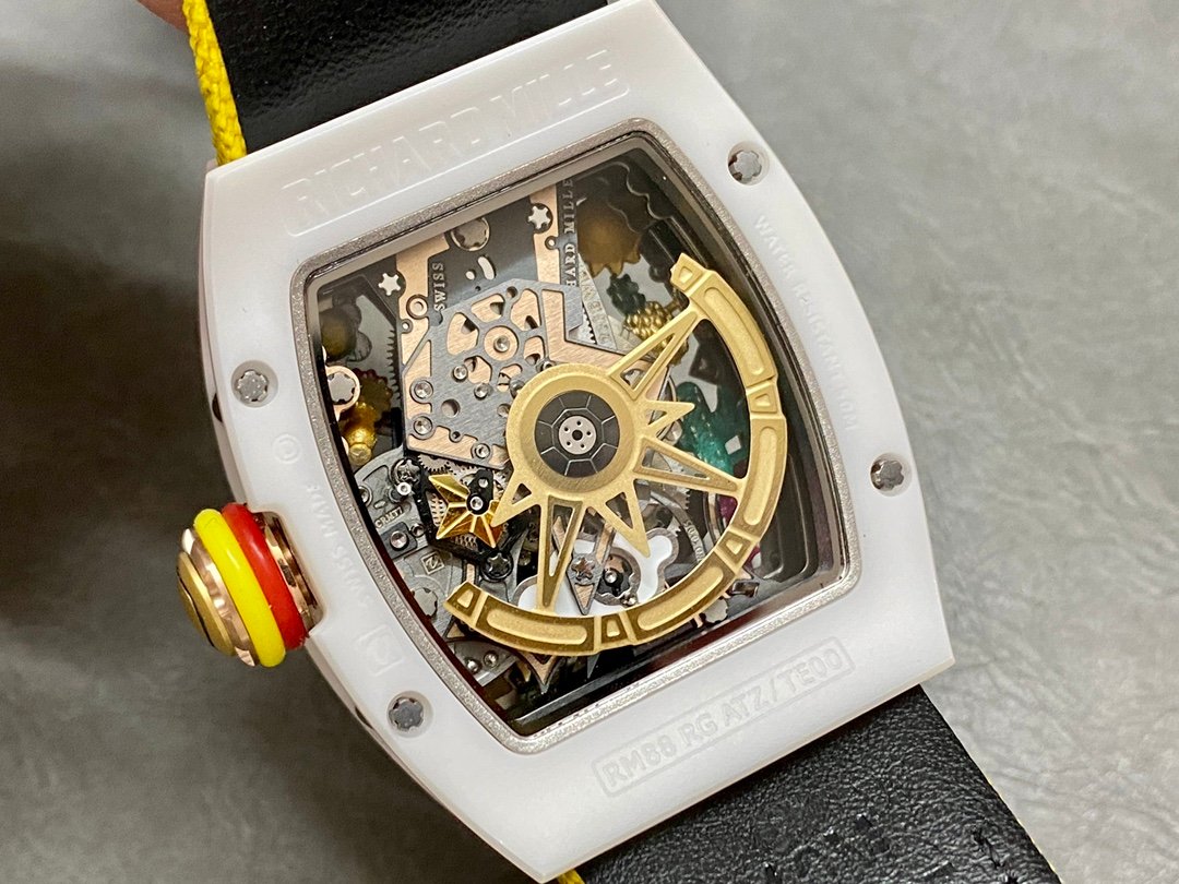 BBA Factory Richard Mille RM07 31.4mm Diamond&White Gold Red Rubber Strap Skeletonized Black Dial