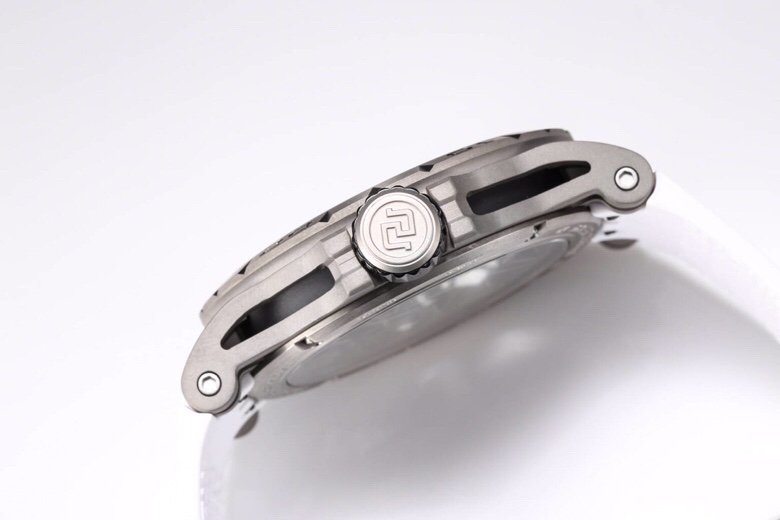 The BBR Roger Dubuis King Series Titanium Tourbillon Model: RDDBEX0479 is a high-end Superclone watch that is made to resemble the original Roger Dubuis King Series Tourbillon watch. It has a titanium case that is 45mm in diameter and 13.5mm in thickness. The watch is powered by a seagull custom RD505SQ winding movement, which is accurately adjusted in six directions and has a power reserve of up to 50 hours. The dial is hollowed out and features a luminous scale, black DLC coating, and a second dial in layered titanium. The hands are covered with a luminous coating for easy and clear reading. The watch is also equipped with a sapphire crystal glass with anti-glare coating and a natural rubber strap imported from Germany.